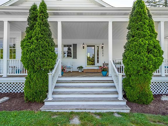 What a unique opportunity! 267 Thompsonville Road is a one-of-a-kind property on 10 usable acres with a 6-stall barn. The property itself is stunning with lush landscaping, apple trees, multiple outdoor spaces & an amazing 57' x 11' front porch! Inside is a meticulously maintained 3 bedroom (potential for a 4th bedroom) & 3.5 baths. The open concept between Living & Dining is seamless. Each room is filled w/ natural light from the walls of windows offering great views of the grounds. The Kitchen is light and bright with a neutral chevron backsplash, quartz countertops & plenty of cabinet space. The Family Room boasts vaulted ceilings, wood beam and a stone fireplace. Just off of the Family room is the powder room, laundry room and access to the side and back private patios. The Master has its own deck to enjoy, 2 closets & a spacious ensuite with dual sinks. The finished gameroom is another great hangout spot. This property is fabulous & is waiting for its new owners! Minutes to Rt.19