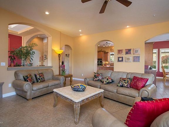 One of those rare opportunities to by a dream home on a dream home site, overlooking the lush sixth fairway of the Prescott Lakes Golf Course, this home has it all. Single level including entry and garage, this custom home is loaded with quality details like 10-12' ceilings, 8 foot French doors, abutted glass in the Great Room, in-floor heat and tile flooring throughout main living areas. Oversized 2 car garage and huge hobby room or workshop. Extensive use of pavers makes up the driveway, pathways and patios including a spacious covered patio. Stone and wrought iron European fencing and lush foliage create privacy from neighboring properties.