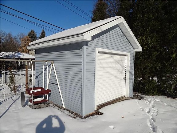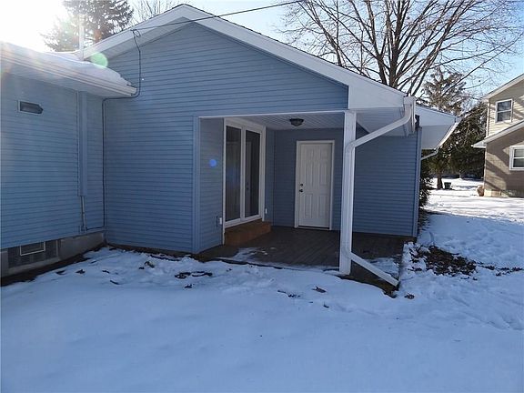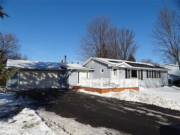 All the heavy lifting is done! Tear off roof 6 years old includes new skylight, Vinyl clad throermopane windows replaced 2014, Siding 2014,High efficiency furnace and central air 2017, hot water tank 2011, replacement shed 2014, all exterior doors replaced. Remodeled bath, all floors are either hardwoods or ceramic tile(great for allergy relief), wood burning stove, Master bedroom offers spacious walk in closet, glass block basement windows, covered deck overlooks backyard, spacious deck at front entry too! Oversized 2 car attached garage, Wall mounted TV's NOT included but brackets are included, all garage and basement fluorescent lighting IS included. RGE avg $170/month. Convenient neighborhood off East Henrietta Rd near Calkins.