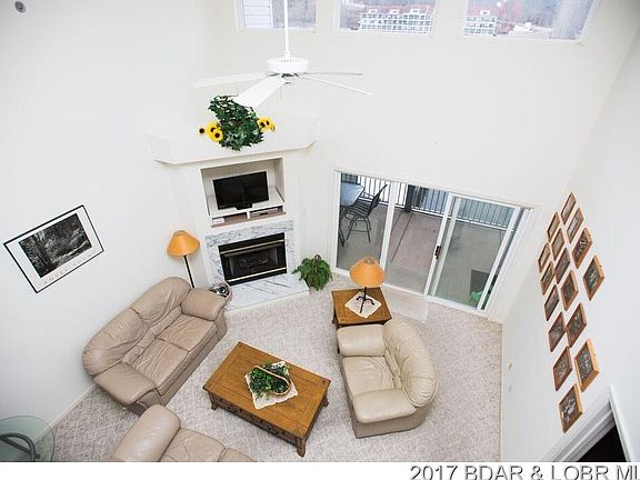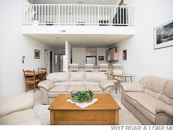 Popular and Well Maintained Big Niangua Complex, Top floor unit offers a beautiful view of the lake from the screened deck. Spacious floor plan with lakefront master bedroom and second bedroom on main level and another bedroom and bath in the loft. Includes a 12 x 30 boat slip with lift. Nice pool area, docks are located in a cove. No rentals allowed in this quiet complex. Furnishings are included.