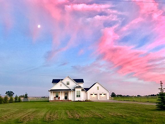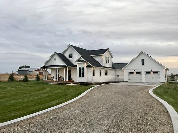 You won't find anything else like it on the market! This gorgeous, like new, custom built home on acreage features an open floorpan with tons of unique upgrades! The gourmet kitchen is a cooks dream with a large 6'x5'3' island, Kenmore Pro appliances, 36" 6 burner range/stovetop, pot filler, huge farmhouse sink, honed granite countertops, ceiling height custom cabinets with sliding drawers and soft close doors, and under cabinet lighting. The main living area and dining room features beautiful rustic european white oak wood floors, huge picture windows with stunning views and a grand custom wood burning fireplace. There are 2 bedrooms and a full bath with a spacious TV/game room on the 2nd level as well as another large living area, 1 bed and full bath in the basement. The main level master bedroom and bath features a freestanding tub, frameless glass walk-in shower, custom dual vanity with Carrera marble countertops, and a walk-in closet. A 2nd bedroom on the main floor is currently used as a home office. You will spend many hours enjoying both the front and back covered porch areas overlooking your fenced and fully landscaped acreage. This home has so many fun upgrades such as Christmas light outlets in the eaves with indoor switch, gas line to the patio area for a grill, automatic sprinkler system with wireless control, custom designed brick chimney and stairs, outside eave lighting, and much more! The home sits on a 1 acre lot and the adjacent 1 acre lot, currently used as a pasture, is a separate building lot that can be used for future re-sale. The pasture is fully fenced and gated with a pressurized K-line irrigation system. Both acres include water rights. Come see this one of a kind home today!