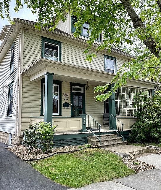 Buyers agent’s welcome. Offers being accepted until June 10, 2022 This desirable, low maintenance 4 bedroom & 2 bathroom house is located on a wonderful tree lined corner lot only a few blocks from uptown Somerset! Enjoy your morning coffee, mature rhododendrons and an abundance of birds from the lovely, partially enclosed front porch. High ceilings and beautiful woodwork will welcome you into the foyer where you’ll find charming pocket doors that open into a large front sitting room or your new home office! The kitchen has been updated with gorgeous and ample cabinetry, a breakfast bar that overlooks the living room with bay windows and an eat-in dining area soaking with natural light from the skylight. The sliding glass door opens onto your freshly painted deck ready for summer entertaining and star gazing! A full bath tucked behind a pocket door off the dining area includes a walk-in shower and Samsung stackable washer and dryer. More impressive woodwork will welcome you onto the landing of the second floor where you will find four large but cozy carpeted bedrooms as well as a second full bath. An unfinished attic and basement offer tons of storage space and plenty of potential! Lots of on-street parking and space in paved driveway for two vehicles. Close proximity and easy walking distance to UPMC Somerset Hospital and Somerset High School. Welcome home!