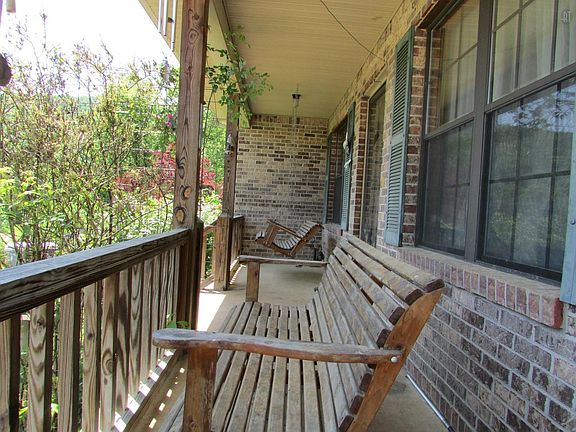 Brick home with 5 buildings! Featuring pole barn & a pond that you can watch the fish swim. Beautiful mountain view. Fenced in back for cows. Chicken coop. Has Mobile home 2BR/1BA. 3 parcels - see photo. Has well & city water. All appliances stay!