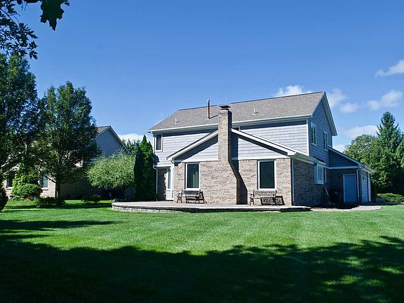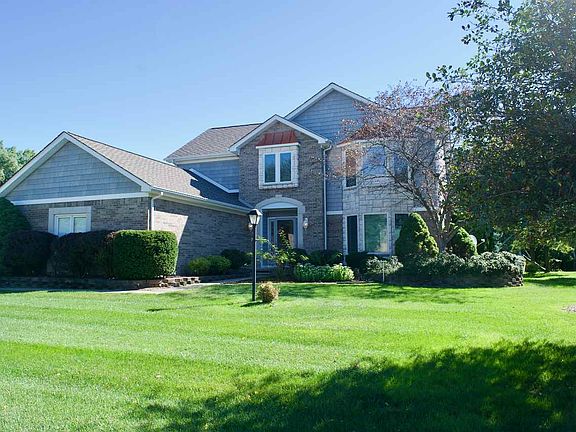 Eddington Farms location!! With a hard to find large lot 159 x 112 x 160 x 104 - and a Bonus 3 Car side entry garage!! HOA $147 per Year - Quality upgrades include: 50 year dimensional roof shingles, 'Certainteed' siding, Stone front for 2 levels by bay windows, ReNewal by Anderson windows (except in DR, Kit, Util Rm), Granite counters, Viking Cooktop, KitchenAid Dishwasher - Updated Trane furnace and Trane central air. Vaulted ceilings in Fam Rm that has east and south facing windows, Patio door for plenty of natural light and leads to a raised paver brick patio, gas log fireplace, Note: Bonus walk In closet on main floor off foyer.