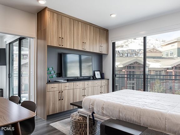 The coveted Yotelpad offers a thoughtful bit of space in a very coveted place: situated at Canyons Resort near the heart of Canyons Village, this efficient one bed, one bath condo is a very rare, top-floor find with not one, but two balconies. Situated facing the mountain, this well appointed property offers perfect views of both the ski mountain and sunsets. Boasting a clean, smart design and accessible on-mountain living, the amenities abound here in the form of indoor/outdoor gathering, a fireside lounge, a year-round heated pool and hot tub, game room, fitness center, jacuzzi and ski valet. In other words? The ideal spot for enjoying a low-maintenance, very cute vacation home. This Unique end unit uniquely offers peace and quiet (as it's tucked away from the noise and activity) alongside a Juliet balcony and patio space, where you'll be afforded stunning mountain views and-in warmer months when the windows/doors are open-the calming sounds and sights of the neighboring waterfall. Details like tall ceilings, modern finishes, and abundant natural light make the space feel open, but it also happens to be one of the more roomy floor plans available. Year-round recreational opportunities offer something for everyone up here-mountain biking, hiking, dining, and concerts, to name just a few. It's an incredible turnkey location that allows you to skip the traffic, too, as easy access to the gondola ensures you'll be on the slopes or dining at Canyons' finest within minutes. Big bonus: when you're not enjoying the condo yourself, you'll have no trouble with short-term rentals. A covered garage offers private storage and a place to park for residents and their guests. Yotelpad makes mountain life easy and exciting, and with downtown Park City just a stone's throw away, you'll never be lacking for something fun to do.