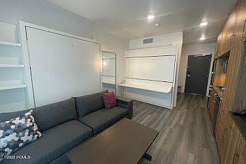 Best top level unit at YOTELPAD located just steps away from the ski slopes, shopping, restaurants, golf course, and hiking/biking trails. This unit sleeps 4 comfortably and has 9' ceilings with a beautiful picture window of the Canyons Resort. Fully furnished with modern Italian furniture, large tv, quartz countertops, stainless appliances, housewares and more. YOTELPAD has many social spaces inside and out to gather with friends and family with a year round pool and hot tub, gym, steam room, game room, conference room.