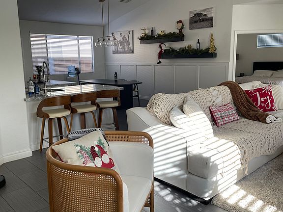 HOME IS UNFURNISHED NOW / Amazing 3 bedroom, 2 bath home with a SPARKLING PRIVATE POOL and charming outdoor entertaining area with barnyard woodwork, and artificial turf! The home is split bedroom, great room floorplan, very open, light and bright. Spacious kitchen with HUGE island, quartz, stainless appliances, updated cabinets, back splash and hardware. Split master has backyard access, master bath has a beautiful walk in shower, large covered patio, ceramic tile and more. Close to A-rated schools, shopping, amenities and highways.