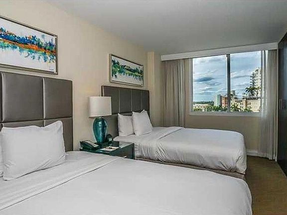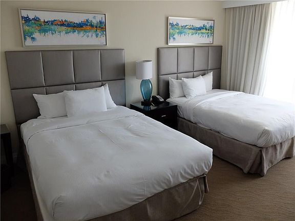 "This beautiful condo hotel located in a Condo-Hotel Building (Hilton DoubleTree) and accompanied by two queen size beds and one bathroom.