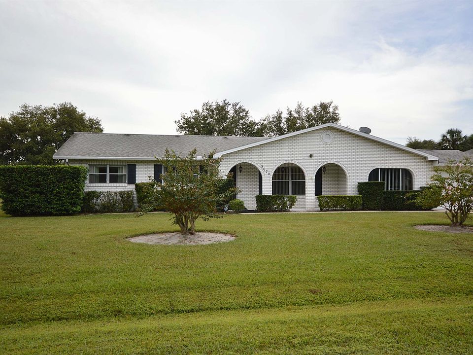 Perfect family home located on a quiet cul de sac with access to Lake Bereseford and the St John's River. This home has an updated kitchen with warm wooded cabinets, eat in kitchen and tile flooring. Breakfast bar and lots of natural light. A custom wooded wine rack adds the finishing touch. French doors will lead you to a enclosed patio overlooking 88 acres of cow pastures and beautiful sunsets. Formal living and dining room are perfect for entertaining family and friends. Family room off kitchen is large enough for game room and also features a utility room with extra storage. Bedrooms are spacious with good size closets. Both bathrooms are handicap accessible. Ceiling fans in each room. Huge backyard with mature trees. Garage is loaded with cabinets for storage. Home Warranty is included. Close to shopping, dining, and a short trip to the world's famous Daytona Beach.