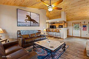 This cozy cabin in the heart of the White Mountains is great for a full-time/part-time summer home or STR. This home backs up to the beautiful national forest where you can enjoy your patio watching the wildlife and wild horses or star gazing at night. It's the perfect location to enjoy all the local lakes, hiking, fishing, and many UTV trails. This 2 bed, 2 bath split floor plan is a must see! This turnkey home is FULLY FURNISHED with king bed in primary bedroom and queen/single bunkbed in 2nd bedroom.There's even a small garage for all of your tools and toys. You really have to see this gorgeous cabin to appreciate all that it has to offer!!