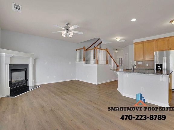 New hardwoods on main level , New Paint and New Fridge .Check out inviting kitchen, featuring an oversized island adorned with elegant granite countertops and complemented by a stainless-steel refrigerator, seamlessly flows into the cozy living room, complete with a fireplace, ideal for unwinding after a long day. The family room, bathed in natural light streaming through an array of windows, exudes a warm and inviting ambiance and opens to a private back patio. Upstairs, a cozy reading nook, expansive hallway, and generously sized primary bedroom await. The primary suite serves as a tranquil retreat, boasting a spa-like ensuite bathroom with a separate tub and shower, dual vanities, and a spacious walk-in closet. Down the hall, an additional full bathroom serves two more bedrooms, perfect for guests, children, or versatile office space. Situated conveniently close to shopping, dining, and entertainment options, this home offers the ultimate blend of comfort and convenience. Don't miss out on the chance to make this your new home! HOA paid by owner Lawn Covered Pets Welcome Lease start date soonest possible