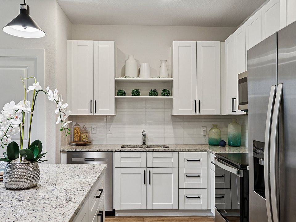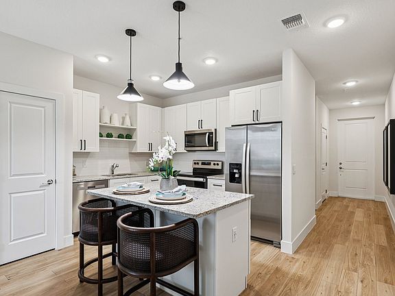 - Exterior features: 4 Bedroom features two Closets, Car Care Center, Direct Entry Garages, Electric Car Charging Stations, Expansive Primary Bedroom, Free Weights, Granite Counter Tops, Linen White or Stone Gray Cabinetry, Nine Foot Ceilings, On-Site Management, Outdoor Dining and Picnic Areas, Outdoor Fire Pit, Pet Parks, Smart Locks and Thermostats, Stainless Steel, Energy Efficient Appliances, Surface Parking, Tiled Backsplash, USB Charging Ports