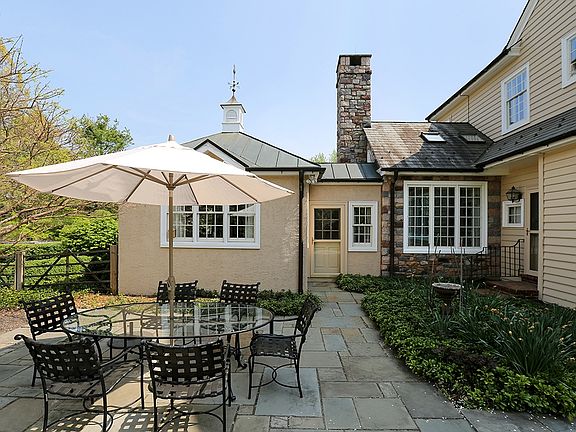 A long driveway winds up to this magnificent house with commanding views of Bucks County rolling fields. This stately field stone manor house has exquisite details with custom millwork, crown moldings stone and wood floors and four fireplaces. The formal living room with fireplace and elegant dining room with French doors opening to a stone terrace set the stage for formal entertaining. There is a massive great room with stone fireplace and a chef's delight country kitchen. The exquisite master suite with sitting room. On 28.5 acres, this wonderful family compound includes a carriage house with two bedroom apartment on second floor and one bedroom on the lower level as well as garage and storage space. There is a professional tennis court as well as a pool with cabana. For the horse lover there is a 9 stall horse barn with fenced pastures a large equipment barn plus a 3 car attached garage. Solebury Fields is a true country beauty.