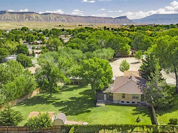 Original 1949 Farm House in Paradise Hills. Ranch style with full finished basement on a gorgeous .90 acre lot of mature trees and views of the Bookcliffs. Enclosed front and back porches (not in square footage). Basement has family room, bonus room, 5th bedroom, 3/4 bath, and lots of storage. Main floor has master bedroom, 3 more bedrooms, full and 1/2 bath, den, formal dining and kitchen, and living room with a fireplace. Main living areas and master bedroom have original just finished hard wood floors. Has detatched garage with water and sewer to it. Has a 12x12 screened metal gazebo for the summer evenings. Brand new furnace, electrical updates, new light fixtures, and some plumbing updates. Large attached carport for extra parking. NO HOA, and has irrigation water.
