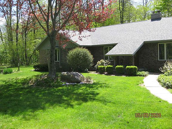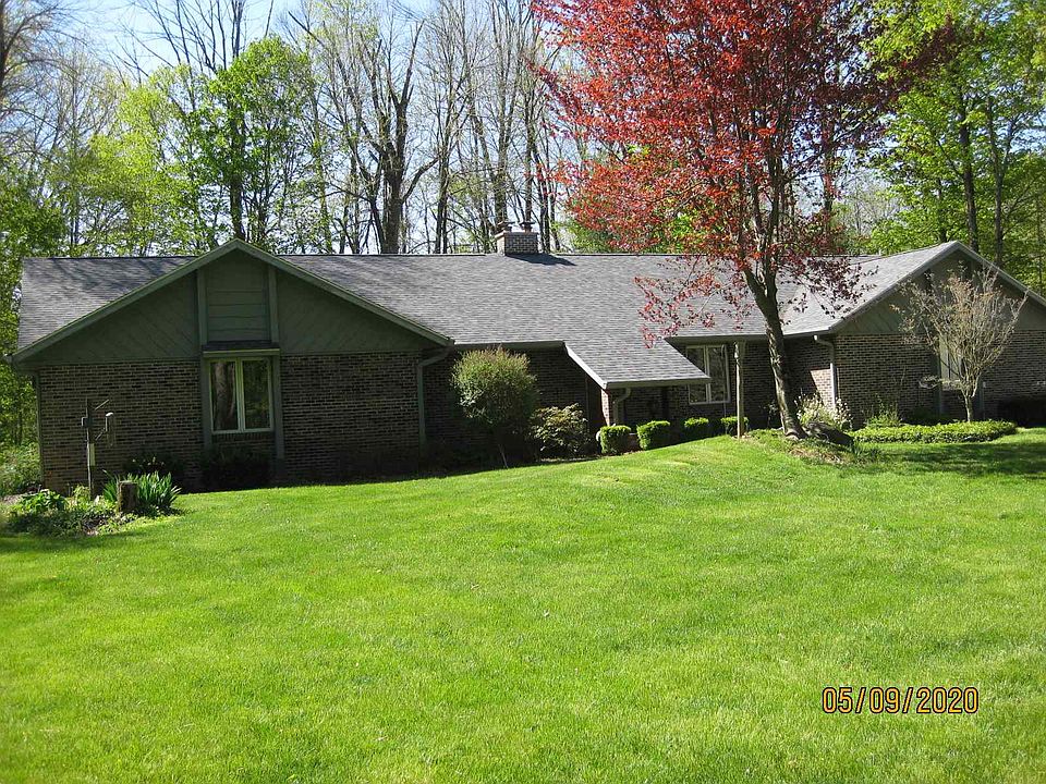 A secluded gem that you must see! Over an acre of pretty woods is the setting this large and lovely, brick and cedar ranch that just blends into its surroundings. The 2550 sq. ft. of living space is a classic example of what a quality-built home should be. The 32x19 GREAT room is an ideal place for gatherings. This wonderful room has a vaulted ceiling , wood burning stove with brick backdrop and an abundance of windows. Adjacent to the great room is a 12x20 sunroom with an entry to a deck that includes built-in benches for a really close encounter with Mother Nature. Not close enough? Take a few steps more and relax in the swing. The kitchen is fully applianced and features pretty cabinets with newer quartz counter tops and a convenient planning desk. The kitchen ahs bookend dining areas-one formal and one casual. The two full baths have been updated with quartz counter tops and the master bath has a large walk-in, tiled shower. Laundry room and anotherhalf bath are on the main level. The three BRs are all nice size with excellent closet space. Now, the basement. The basement adds an additional 1150 sq. ft. of living/rec area. Large and open area that includes nice cabinetry with desk, brick décor on one wall and built-in bookshelves. You choose how to use this multi-purpose space but it's designed to suit any number of wants and needs. There is a 3-car attached garage and a very large detached garage with 3 doors providing entry from two sides. There is a full-house generator to quarantee your comfort in the event of a power failure.