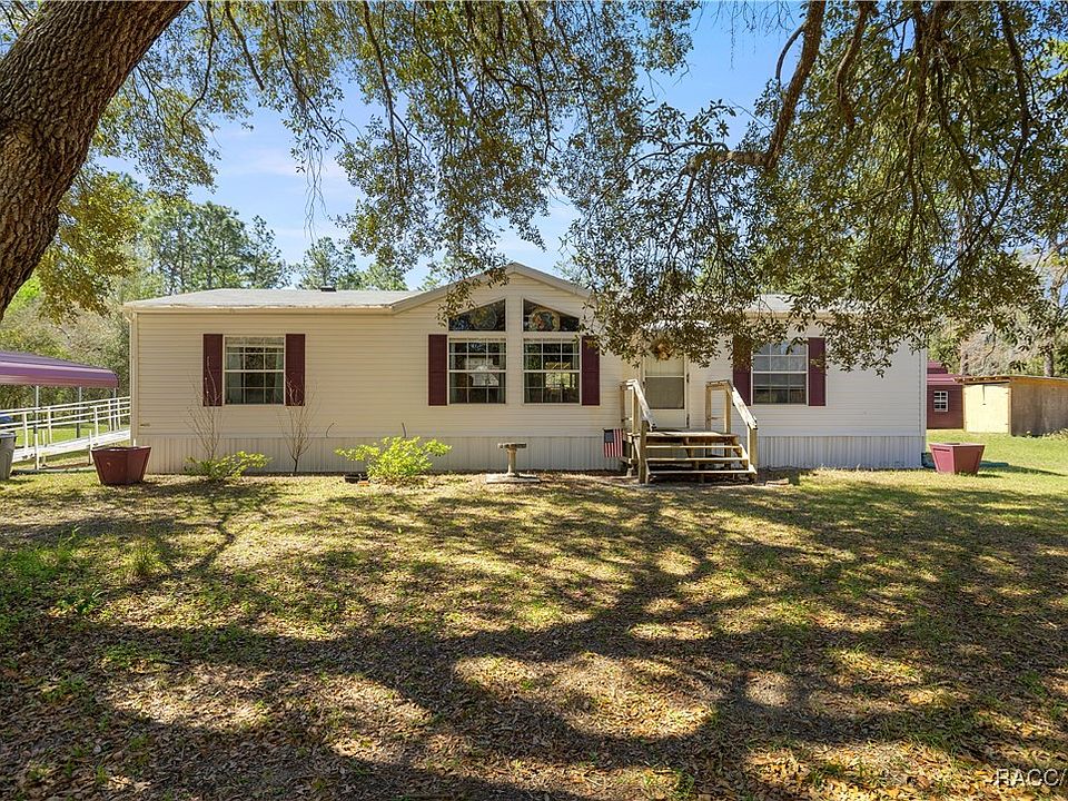 Escape to the countryside and discover this charming 3-bedroom, 2-bathroom doublewide home on 1.25 fully fenced acres in Williston Highlands. Built in 2002, this bright and inviting home offers over 1,400 sq. ft. of living space with a desirable split floor plan. Recent updates include a newer roof, appliances, flooring, and kitchen cabinets. Interior features include freshly painted walls, updated bathrooms. Outside, you'll find a spacious wooden deck, a 2-car carport next to the home, and a large outbuilding that can serve as a workshop, barn, or storage for your toys. With plenty of space for your animals to roam, this property is perfect for peaceful country living!