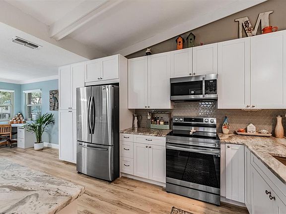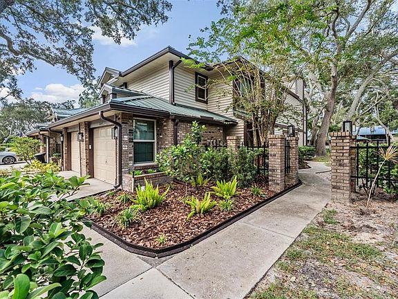Beautiful remodeled 2/2, end-unit townhouse, nestled in the quiet and charming community of Laurel Oaks, with its modern updates and serene coastal vibe. Open and airy layout drenched in natural light, where warm tones create an inviting ambiance. The kitchen is a true show-stopper, white shaker cabinets, stainless steel appliances, gorgeous granite countertops, and a custom tile backsplash. It also serves as the heart of the home, allowing a seamless flow to the spacious living and dining areas, offering plenty of room to relax or host guests. Indoor laundry room as well, making household chores a breeze. Both bedrooms are generously sized with ample storage. The Primary suite features an elegant bath with a double vanity, a glass-enclosed shower, and a private water closet. This home has been thoughtfully remodeled with all-new impact windows for peace of mind and energy efficiency, a new HVAC system for year-round comfort, metal roof (2023). Step out onto the refreshed back balcony to enjoy stunning views of the pool. The garage is equipped with a French-cleat storage system to keep your space organized. Living in Laurel Oaks means access to incredible community amenities, including a tennis court, pool, a and vibrant Downtown Dunedin, this location offers the ultimate coastal lifestyle.