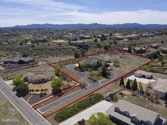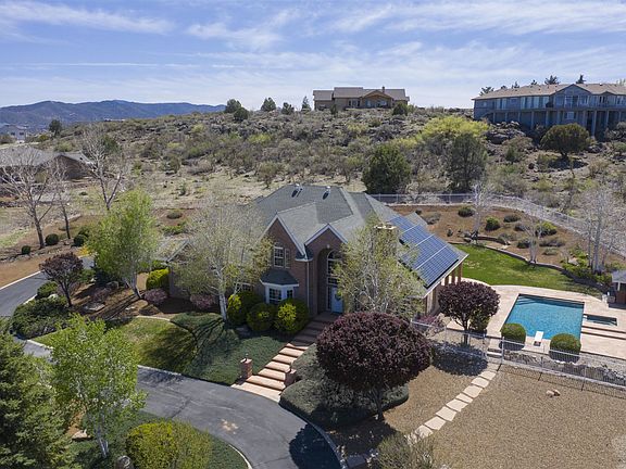 This is truly a one of a kind home. This stately brick beauty is located right in the heart of Prescott. Sitting on just under 3 acres this home is NOT subject to an HOA. The 4 bedroom, 3.5 bathroom, home features a formal dining, spacious kitchen, breakfast nook, family and formal living rooms, office, and a massive game room. The elegant home features 10+ foot ceilings and more storage than you could ever need. The beautiful pool is heated year round and boasts an automatic retractable safety cover to ensure no kids or pets fall in. The views are simply breathtaking from every room and nook of the yard. The home is connected to both city water, and features a well currently servicing the entire property. Owned SOLAR. Acreage may be split, with a minimum of .8 acre required by the city.