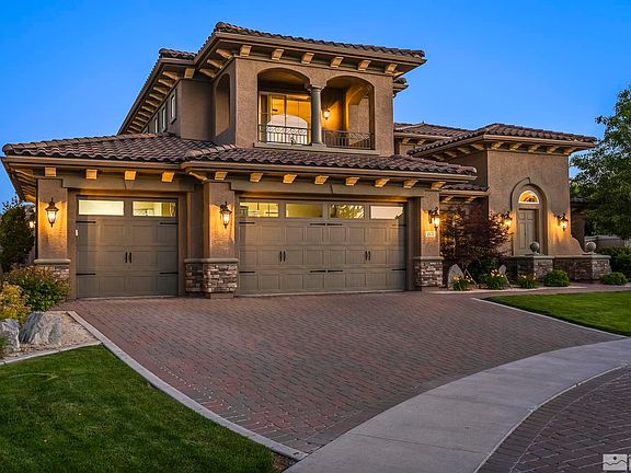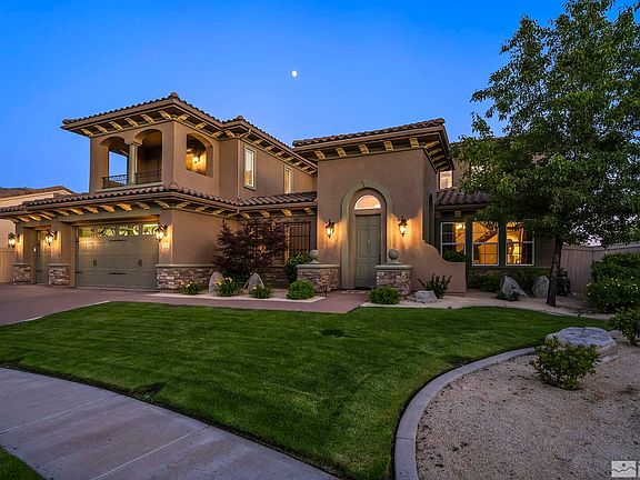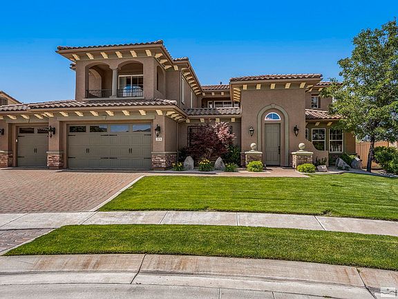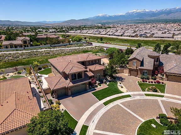 Gorgeous home with stunning views of Mt. Rose and the Sierra, awaits. Featuring many tasteful and thoughtful upgrades, this spacious and serene home is perfect for entertaining and winding down. Boasting high ceilings and wonderful light throughout, beautiful hardwood flooring, a tranquil and private garden courtyard, three viewing balconies plus a large covered patio with outdoor fireplace and jacuzzi. Welcome home to the desirable Saddle Ridge at Damonte Ranch community., Located on over a quarter acre lot in a quiet cul-de-sac, the home enjoys the luxury of open land behind the property with no direct, rear neighbors. The the open foyer leads into the large kitchen - great for entertaining with its oversized island, chef's pantry, and premium stainless steel appliances. Enjoy summer BBQ's and evenings on the back patio with a built-in, gas-stubbed grill and kitchen, outdoor fireplace, and Sundance jacuzzi. The primary suite offers incredible views from the balcony, a spacious ensuite bathroom with double sinks, jetted tub, and California walk-in closet. The beautifully kept landscaping is low maintenance with mature trees and plants. Plenty of storage, including a three car garage with a work bench and a large storage shed. Amenities include the clubhouse, which features an Olympic-sized swimming pool, hot tub, toddler pool, and a fully equipped gym, as well as a tennis court four pickle ball courts, and basketball! All of this with peace of mind with 24 hour security gates. Tucked away in Damonte Ranch, but maintains easy, quick access to everything from spectacular Lake Tahoe and world-class skiing to shopping, dining, and more.