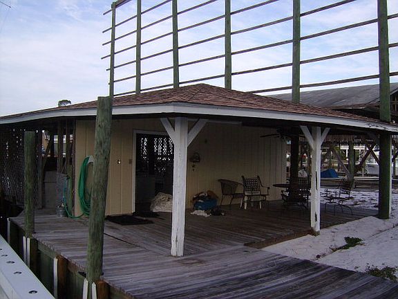 Large home with boat house and 50 ft. slip. It has a large great room, 5 bedroom, 4 baths & sits on a deep water inlet to Terry Cove. The large boathouse includes an outdoor kitchen, cleaning station & plenty of room to relax. It is currently set up as the home port for a fishing charter service due to the quick & easy access to the Gulf. There is a lift/elevator on the back porch.