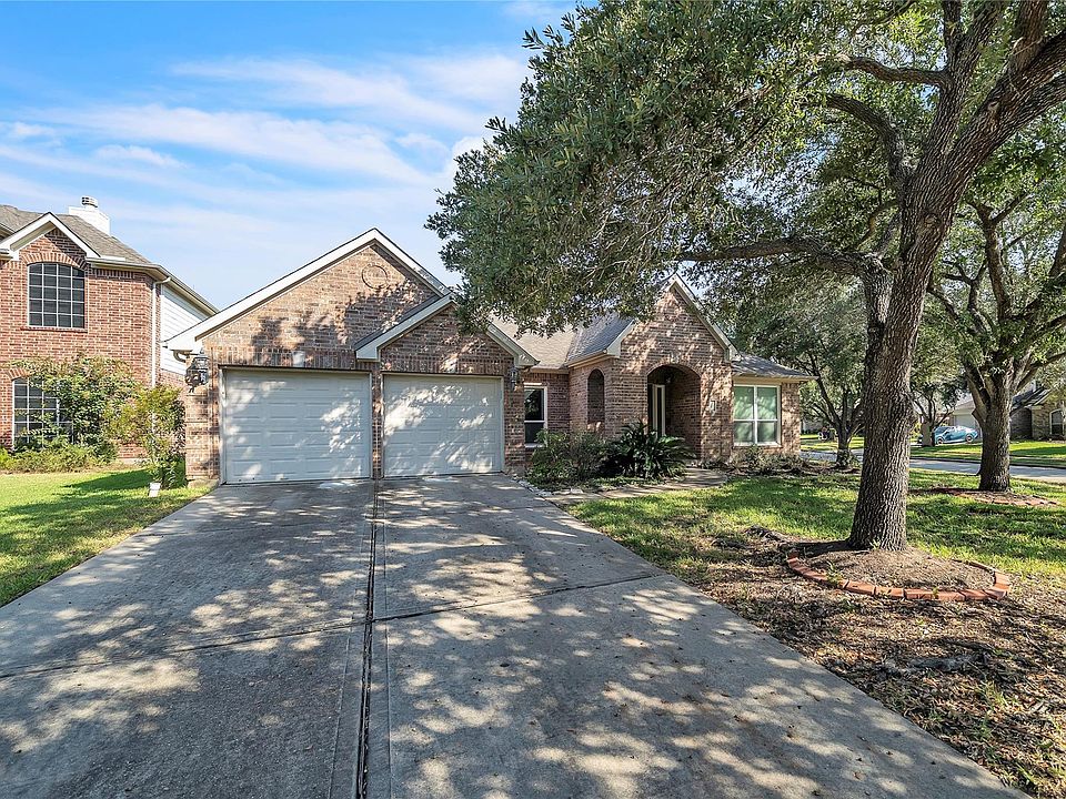 NO CARPET! This former model home is a beautifully designed 3-bedroom, 2-bath single-story residence crafted with expert attention to detail. Features wood flooring throughout the den, bedrooms, and closets, and tile flooring in the formal living room, dining room, kitchen, breakfast area, and all wet areas. The upgraded kitchen offers granite countertops and stainless steel appliances. Spacious bedrooms include a primary suite with a generous closet. Enjoy a large backyard with a sprinkler system and a covered patio, ideal for family gatherings and entertaining guests. Additional highlights include an attached garage, easy access to I-10 and Grand Parkway, and walking distance to the community recreation center, pool, and schools. *Refrigerator, washer, and dryer are included*