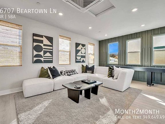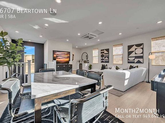 This fully furnished 5-bedroom, 4.5-bathroom home is a harmonious blend of modern elegance and practical living, designed for both relaxation and entertainment. With spacious interiors and a versatile layout, this residence is ideal for families or professionals seeking comfort and flexibility. The standout feature is the expansive third floor, which serves as a versatile bonus room, complete with a table shuffleboard game and ample space for a home office. Step outside onto the large deck, furnished with outdoor sofas and a foosball table, where you can unwind while enjoying partial mountain views. Situated in a well-maintained community that offers a swimming pool, parks, and trails, this home promises a lifestyle of convenience, recreation, and tranquility.