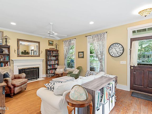 Welcome to this 3 bedroom/2.5 bath cottage in the sought after Broad street neighborhood, one of Beaufort's most charming. The beautiful primary bedroom suite overlooks a deck and private backyard, with jasmine-covered fence. Open floor plan, LR fireplace, large closets and plenty of storage. Enjoy views of the live oaks from the welcoming front porch and screened back porch. Handicap accessible to the 1st floor via an elevator. Walking distance to Southside park and Mossy Oaks trail. Don't miss this opportunity to live in this desirable enclave as homes on Broad Street are rarely on the market. Make this lovely cottage yours today.