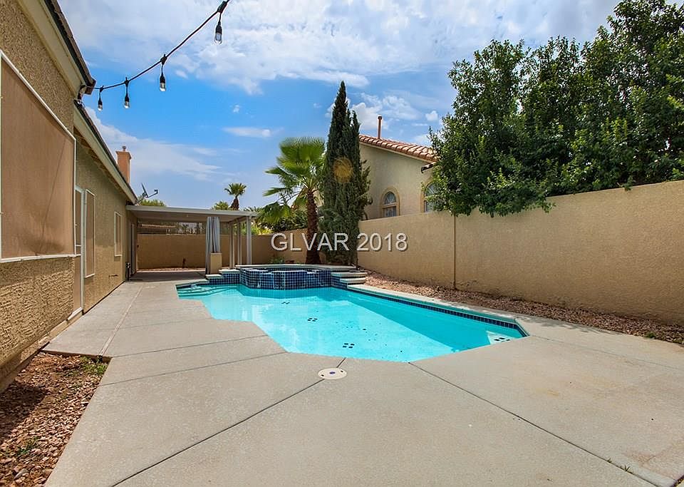 Stunning single-story home in IDEAL Henderson location. Just a stone's throw from Pebble Park, this home sits on a corner lot w/sparkling pool & spa! All appliances included & purchased within the last 2-4 years. Gorgeous 18x18 tile throughout. Chef's kitchen w/Stainless Steel appliances, oversized island, granite counters, breakfast nook, & W/I pantry. Recently remodeled master bath w/INCREDIBLE, spa-quality master shower! You will fall in love!