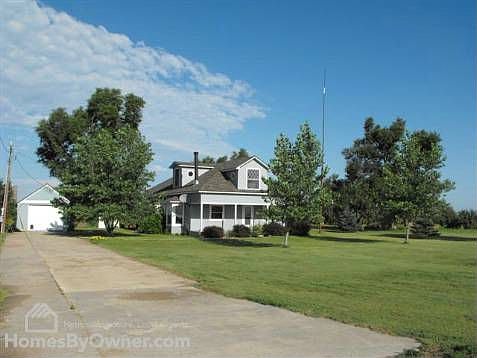 Beautiful remodeled farmhouse built in 1918, on over 3 acres surrounded by pine, cedar and juniper trees. 4+ bedrooms, 3 baths, hardwood floors, wood burning stove, forced air furnaces, oak cabinets, skylight, dormers, bay windows, newer carpet upstairs, small basement, steel siding, covered front porch, back porch, sidewalks, fenced backyard, 3-room chicken house with huge fenced chicken run, 40X35 barn, 18X20 bunkhouse, over-sized single car garage, RV carport, 1 well, new septic, 50 ft. windmill with swimming pool/reservoir below it, propane tank, garden area, and plenty of room to run. Very beautiful and peaceful and close to town. Checkout the tax incentive when you purchase a home in western Kansas this year!