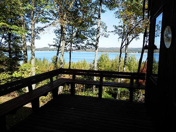 Amazing Portage Lake view plus lake frontage for your dock and boat! 1/6 interest in a natural beach lot with 283 feet of sandy beach frontage. The open architectural design and natural materials blend with this unique treetop setting. 3-4 bedrooms, 3 baths. Special features include tongue and groove wood vaulted ceilings, abundant windows to capture the view and natural stone fireplace, stone accent walls and entry flooring. Kitchen has walk-in pantry and breakfast table area overlooking the lake. Wet bar area for entertaining. Main floor master bedroom has a Murphy bed, full bath and adjoining sitting room with 3 walls of windows. Main floor laundry. Upstairs there are 2 bedrooms and full bath. The walkout lower level rec room has lake view plus a wood stove and adjoining bath. New roof in 2007. Portage Lake has direct channel access to Lake Michigan. Frontage on Crescent Beach Road with a shared driveway easement to home on ridge. Steps to beach are shared with neighbor to the West.