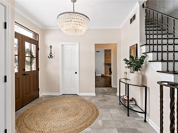 Welcome to this STUNNING four-bedroom home in Deerfield Manor - USC! This beautifully maintained property blends a ton of modern upgrades with timeless charm. The 2 story entryway features elegant porcelain tile and rod iron stairway railing. Refinished hardwood floors flow throughout the main living areas, complemented by a gas fireplace ('22) in the living room and a wood-burning fireplace in the den/family room. The fully renovated kitchen boasts quartz countertops, white cabinetry, a farmhouse sink, and high-end Thermador and Bosch appliances. The master bath offers a luxurious walk-in shower, while the finished basement includes vinyl flooring, a custom wet bar with cabintry, and a full bath. Walk out of your basement to enjoy your private inground pool and patio area (new liner '23). Additional updates include a newer roof ('22) with full warranty, newer AC ('22), serviced garage door and furnace ('22), Custom blinds, and updated sliders and doors.