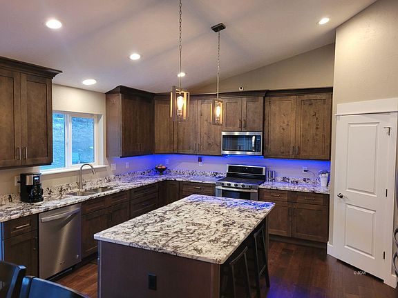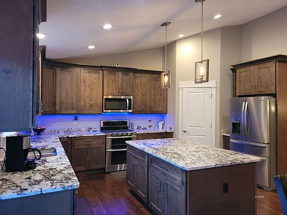 This six bedroom, 3 bath home is immaculate! It sits on almost 3 acres! This is the Emma floor plan by Braemar. Some of the upgrades are: Gas fireplace, gas range, side entry garage, 2 island pendants, additional can lights through out the home, additional stone and board and batten on exterior of home, custom master bathroom including additional cabinets and drop down for vanity, double door to office, and cold storage. The seller has added a commercial grade reverse osmosis water filtration through the whole house. This is a two filter system that is really easy to maintain and includes a water softener. Natural gas in the back for the BBQ and fire pits. They've added underground pipes for the roof spouts to drain at the bottom of the hill. There is also a generator hookup to the well if power goes out. The basement was recently finished and features a bar complete with granite countertops. This can be used for family and entertaining or it makes the perfect man cave.