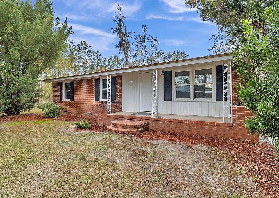 The cutest home is nestled away on 1 acre of land. The home has been remodeled throughout with paint, flooring, and an updated kitchen and bath. The kitchen features white cabinets, stainless appliances, and granite countertops. Rear patio and a small shed.