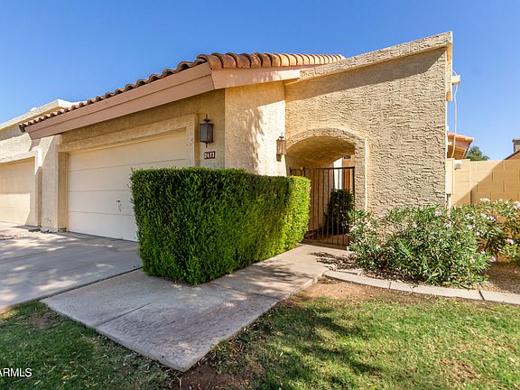 Prime Chandler location across the street from the pool, tennis courts & community center! 2 bed 2 bath Patio home w/ a 2 car garage. Walk thru the gated entrance to a quaint courtyard. Vaulted ceilings in the great room w/ large windows that overlook the backyard w/ a wood burning fireplace. There is a formal dining room & eat-in kitchen w/ bay windows. Second bedroom has second full bath. Primary suite is over-sized w/ a walk-in closet & an exit to the backyard the primary bath has dual sinks, linen closet & shower tub combo. Inside laundry room w/ cabinets. Close to parks, schools, 101 freeway & ASU research park & many more!