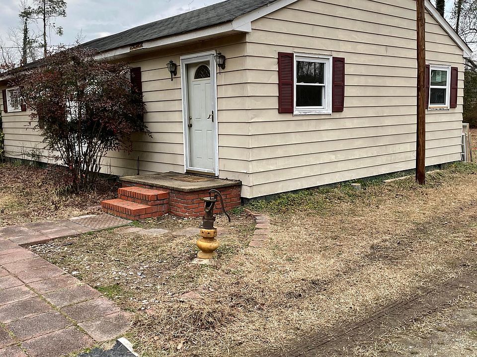 Two bedrooms, 1 completely remodeled bath, living room with gas log fireplace, dining room, newly remodeled kitchen with stove and refrigerator. office/studio, utility room with washer dryer hookups. Newly installed heat pump system. 1 1/2 acre lot with grape vines, garden spot, deck. Three outbuildings include: 24' x 36' garage/workshop, utility/storage shed, studio/man cave. House has aluminum siding which will be repainted in the Spring. Interior has just been completely repainted. Renter covers all utilities. Renter will cut grass and trim where and when needed. If renter fails to maintain grounds in good condition landlord will do so at renter's expense, $100 for each occurrence.