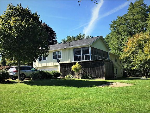 Spacious, yet "Cozy" best describes this home. The main level has 3 bdrms, 1 full bath, a dining rm w/fireplace. The kitchen features a small eat-in area w/pantry & ample storage throughout! The Great Room w/cathedral ceiling & large stone fireplace are spectacular! Enjoy the wildlife views from the enclosed Florida Room, just off the Great Room! The finished basement includes a "Family Rm", 2nd full bath, laundry, & 2 rooms (office, den, etc.). The 1-2 car garage is located under the house along with a work shop area. The small kennel located in the basement is heated/cooled & can easily be converted for other uses. Located on 10+ acres with approx. 9 acres of woods, privacy & pond! A/C throughout the 1st floor & basement! 1 yr old roof & several energy efficient storm windows are new!