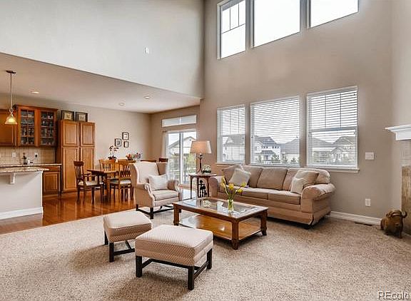 WONDERFUL BETTER THAN NEW HOME IN BLACKSTONE COUNTRY CLUB! LIGHT, BRIGHT AND OPEN FLOOR PLAN. STUNNING HARDWOOD FLOORS! 2 STORY HIGH CEILINGS IN OVERSIZED GREAT ROOM WITH GAS FIREPLACE. ADJACENT KITCHEN HAS SLAB GRANITE COUNTERS, LARGE ISLAND, TUMBLED TILE BACKSPLASH, STAINLESS APPLIANCES INCLUDING DOUBLE OVENS, GAS COOKTOP, REFRIGERATOR, MICROWAVE, & DISHWASHER, A WALK-IN PANTRY AND A PERFECT EATING SPACE THAT LOOKS OUT ONTO THE LARGE PATIO. ONE BEDROOM/STUDY ON THE MAIN WITH A FULL BATH AS WELL. LARGE VAULTED MASTER SUITE W/5 PIECE BATH, OVAL SOAKING TUB, WALK-IN CLOSET & GRANITE VANITIES. 3 MORE BEDS UPSTAIRS WITH 2 MORE FULL BATHS, ONE BED HAS ITS OWN PRIVATE BATH. MAIN FLOOR LAUNDRY W/SINK & CABINETS. BASEMENT IS OPEN AND READY TO FINISH. FENCED YARD W/SIDEWALK THAT GOES AROUND TO FRONT. SPRINKLERS FRONT AND BACK W/DRIP SYSTEM. ENJOY THE EXCEPTIONAL AMENITIES IN BLACKSTONE COUNTRY CLUB: RESTAURANT, POOL, TENNIS, GOLF & CLOSE PROXIMITY TO SOUTHLANDS MALL, AURORA RESERVOIR & MORE!