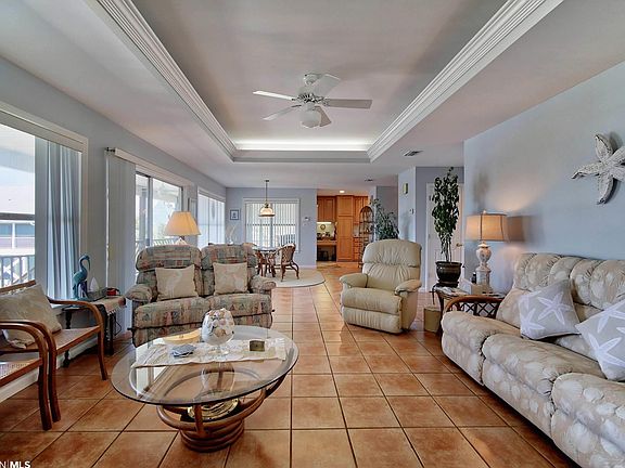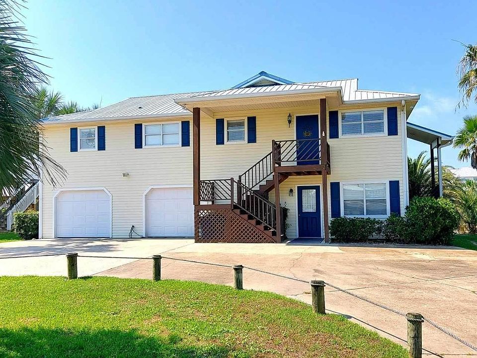 REMODELED AND BOAT READY! This corner canal front home provides super easy access to Cotton Bayou. The interior has been essentially replaced on the lower level with numerous upgrades installed on the upper level. The upper portion of the home is 2br/2ba, plus office with all hard surface flooring and smooth ceilings. The living room has plenty windows that provide tons of light and views to enjoy the surrounding area. The 2nd floor deck gives even more opportunity to take in south facing water views. The kitchen has granite and stainless steel appliances that are only 3 years old. The ground level has a large 3rd bedroom area with three beds, its own bathroom, utility room with extra sink and additional covered sitting area. The mature landscaping sets a tropical tone that will make this a prefect oasis. The boat slip has a 25,000lbs lift that has supported a 35'+ boat. This lift should handle up to a 15' beam. The adjacent cleaning station and deck paths make for easy use. Other features include a true 2 car garage with lots of storage, circular driveway, and external elevator (aquavator).
