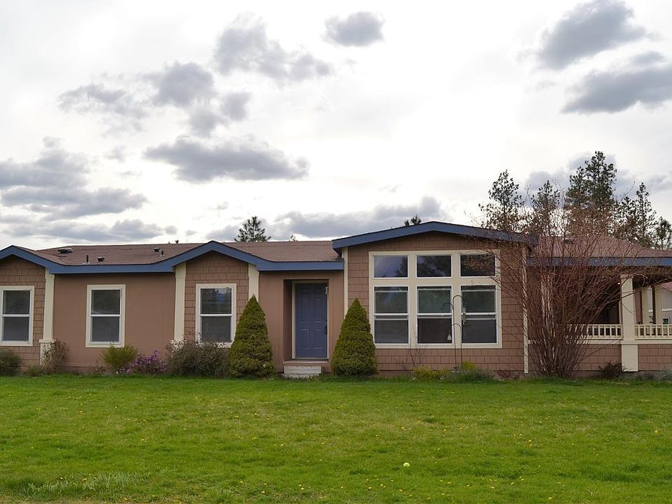 Peace and tranquility just minutes to town! This 2003 Palm Harbor home sits on 5 treed acres MOL and features almost 2500 square ft of living space. Four bedrooms , 2 baths, two family areas, open kitchen, and a spacious master suite with access to back deck with hot tub. Detached shop/garage with plenty of space. Covered front porch sitting area with views to Mt. Spokane.