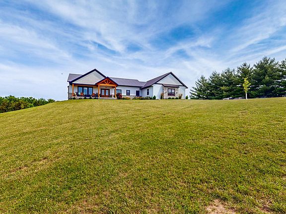 Situated on 21.4 acres in Lanesboro, MN, this 4-bed, 2.5-bath custom home built in 2021 features an ICF foundation, heated 28 x 40 garage, fiber optic internet, and a trail system. Enjoy Cambria countertops, Andersen windows, steel siding, and a steel roof. Gas and electric fireplaces add cozy touches, blending modern comforts with rural tranquility.