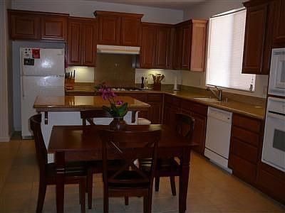 Move in ready, Mediterranean style, designer interior paint, 3 bdrm, 2 ba, with 3 car tandem garage, upgraded insulation, pre-wired surround sound, link us system. Kitchen combines funtionality with its open connection to family room, center island, granite counter tops, breakfast bar, and pantry. Master suite includes a large walk-in closet, master bath with a jetted soaking tub, separate shower. Auto sprinklers front & back. Separated detached patio with extra cement work no permits. Not included in sale of home is water softener and purifier system, curtains & curtain rods, speakers.
