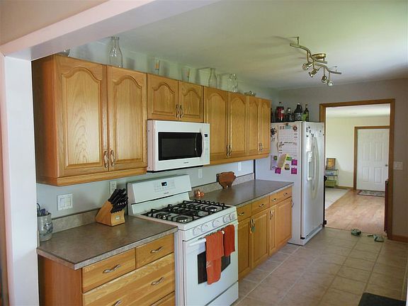 "Move your family to the country" in this ready to go home with 3 bedrooms including an 11' x 20' master bedroom suite w/ oversized, 8' walkin closet and private master bath w/ 5' tiled shower and heated tile floor. The 2nd bath offers updated fixtures and additional linen storage. The galley kitchen offers updated hickory cabinets, laminate counter tops, tile floor and includes the appliances. Separate cozy dining area, a must see 25 x 19' family/living room. There is updated paint, flooring and lighting throughout. Full, usable basement w/natural gas furnace and central air w/ updated plumbing and electrical and the laundry room includes a front load washer & dryer. There is a partially floored attic w/ stairway for storage of future expansion. The 32' x 26' attached garage includes a 3rd side garage door, room for 3 vehicles, a work bench and additional storage. The exterior has updated landscaping, vinyl siding and a new metal, hidden fastener roof system, raised bed gardens and nearly 3.5 acres of country to call you own. The possibilities are endless. Located just west of Butler & north off of Highway 6.