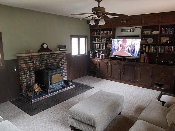4 bedroom 2 bathrooms. Master bedroom is roughly 500 square. Ft with 2 walk in closets. Newly remodeled master bath with jacuzzi tub and walk in tile shower. Fireplace in main living room. New granite countertops in kitchen. 1 attached garage 24x32 and one unattached garage 28x36. New 5 inch well about 7 years old.