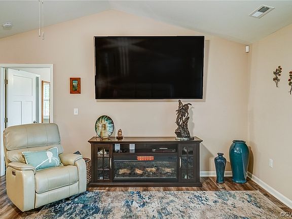 Adorable one-level living with all the finishes! Recently built less than 2 years ago, this spacious rancher is a step above the rest and has all the right touches. From the moment you arrive, you'll notice the tender loving care this comfortable home has enjoyed; it's situated on a large, nearly 5-acre lot with fresh and meticulous landscaping along with a new asphalt driveway with a turn-around space. The home offers beautiful LVP flooring throughout and custom plantation shutters. The kitchen ties comfortably into the family room, and provides luxurious granite counter tops, stainless steel appliances, a large island with barstools, and a pantry for convenient food storage. The primary bedroom has a walk-in closet and connected bathroom, with double vanity, a gorgeous frameless walk-in shower, and spacious linen closet. On the other side of the home, your family and friends will spread out in your two guest bedrooms. In the evenings, unwind outside on your large back deck or cozy covered front porch. This lovely home also comes with a massive 86" flat screen television, a 75" television, fireplace, area rugs, washer and dryer, a house generator, and a storage shed outside.