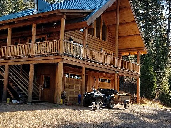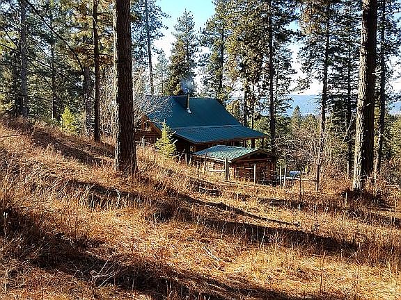 Impressive log & wood work throughout this well care for home. 15 plus acres.Two sides of the property border forest service ground. Set up for horses. 2 bedrooms on the main floor & a loft that is stemmed in with plumbing. Sets well off the highway & is surrounded by lots of trees. Eight foot, redwood deck wraps around 2 sides of the house. Partially finished basement consists of space for a 2 car garage, storage, shop area & an enclosed room with a half bath. Forest property with predominantly pine, mixed with some Douglas Fir. A seasonal, unnamed creek which is melt off and spring fed runs through property.