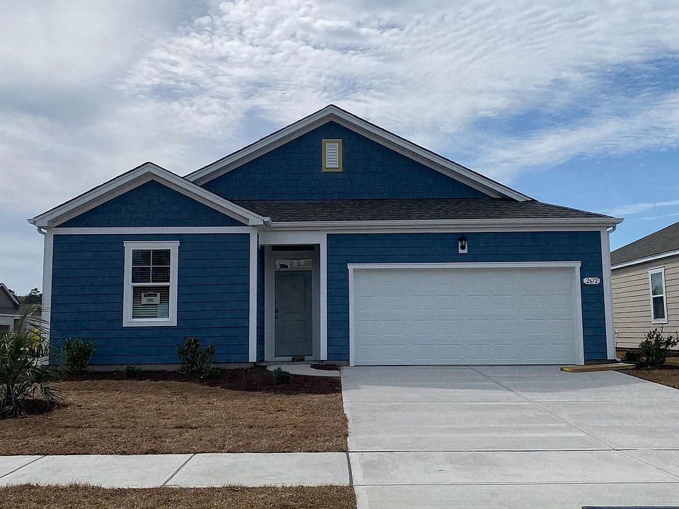 The Kerry offers one level living at its best! Featuring an open concept design with 9 ft. ceilings and plenty of room for entertaining. The spacious kitchen offers white painted cabinets, granite countertops, a large island with breakfast bar, and stainless appliances. Tons of closet storage and a large laundry room! The private primary bedroom suite has a walk-in closet and en suite bath with a dual vanity and 5 ft. shower. Covered rear porch for additional outdoor living space. Beautiful laminate wood flooring throughout the main living areas, a tankless gas water heater, two-car garage with a garage door opener, and our industry leading smart home technology package will also be included! Enjoy wonderful amenities and a fantastic location just minutes away from shopping, dining, and the beach! *Photos are of a similar Kerry home. (Home and community information, including pricing, included features, terms, availability and amenities, are subject to change prior to sale at any time without notice or obligation. Square footages are approximate. Pictures, photographs, colors, features, and sizes are for illustration purposes only and will vary from the homes as built. Equal housing opportunity builder.)