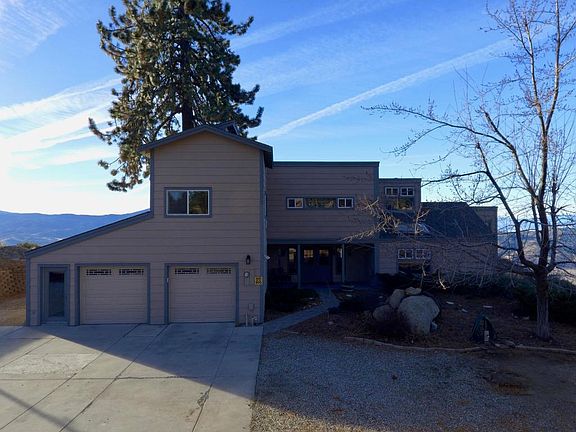 This serene 3.23 acre modern design home has sweeping views of Bear Valley Springs & beyond! 3+3 2630 sf home is open & bright, with vaulted knotty pine ceilings & exposed beams. Main level master bedroom suite is lovely with great closet space & beautiful master bathroom with a lovely claw foot tub for soaking & a large shower. Upstairs is a large loft bedroom, which is being used as a family/game room, with an additional closet big enough to use as a craft room! There is a bright 160 sf office adjoining the upstairs guest bedroom. The extra large garage has a dedicated workshop area & the large concrete apron outside allows for ample parking & RV space! This home has ample closets & custom cabinetry. Surrounded by mature pines & spectacular rock outcropping. Pics 1-30 of actual