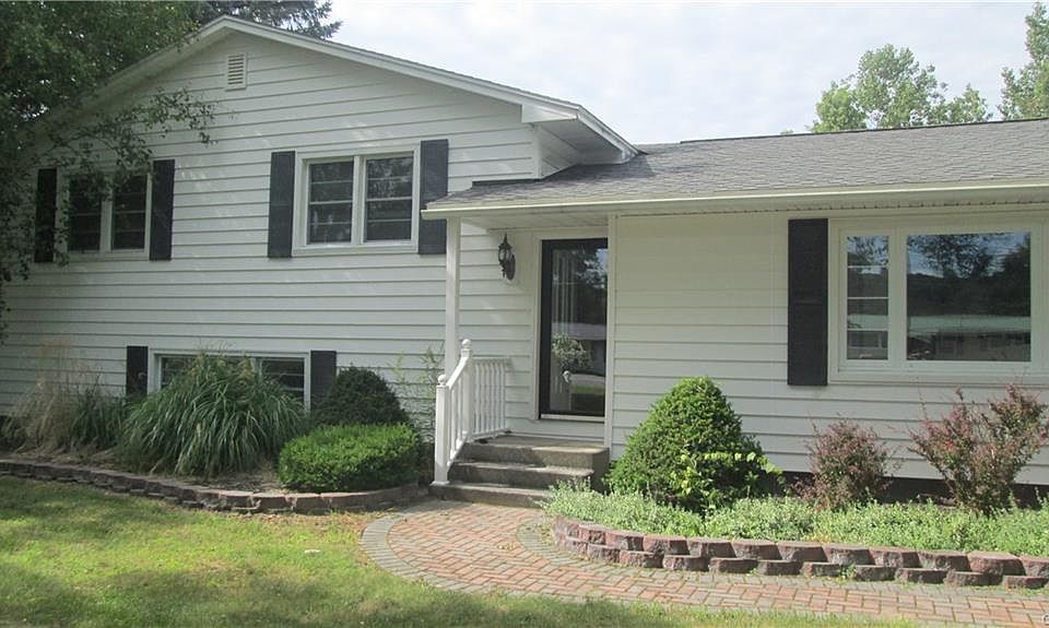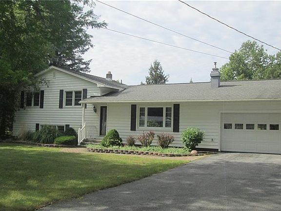 Picturesque exterior,ready for quick occupancy,perfectly located just outside city & a short drive to Ft Drum.No city or village taxes yet has natural gas,public water & sewer for the best of both worlds.Soundly built w/great floor plan,sq footage is per county records.Large updated eat-in kitchen,dining area w/patio doors to large private sundeck overlooking deep,fenced landscaped yard w/in ground pool.No neighbors on either side, 1 side wooded next door. Extra large living room w/stone natural gas fireplace maintenance free.Private upper bedroom area & lower family room,1/2 bath laundry area,update for possible guest in-law area,plus workshop & storage area. Watertown schools and over sized 2 stall att garage.1 year HMS home warranty.Extra lot, 115 x 198 is included, Tax ID 75.17-1-6.32.