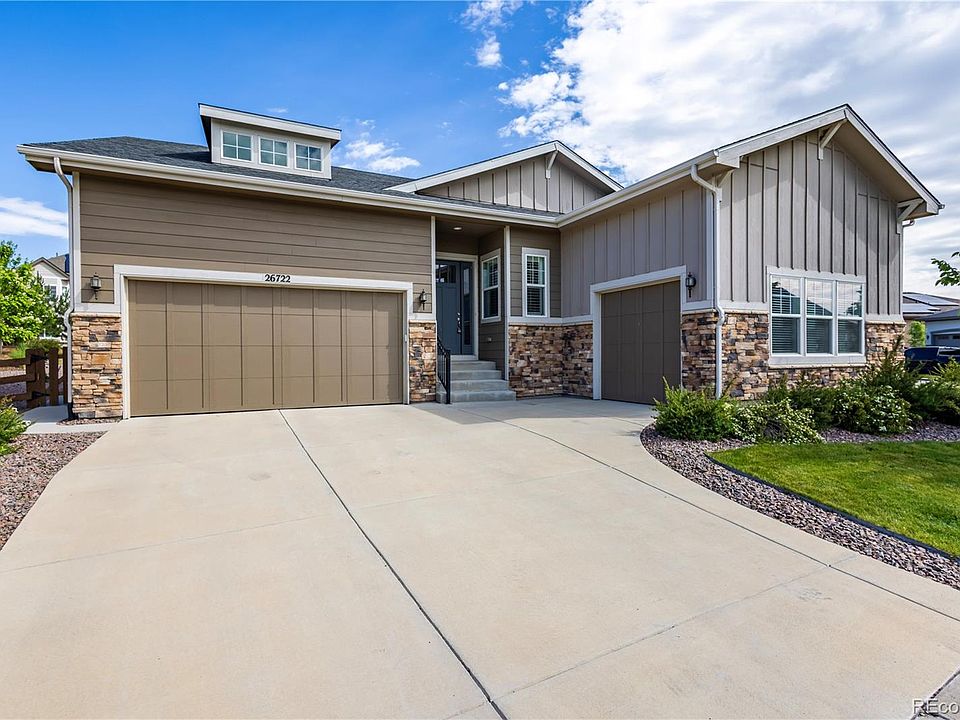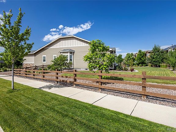 Location! Location! Location! This beautifully maintained ranch style home situated on a prime corner lot in the Southshore community. Inside, natural light fills the open floor plan and creates a welcoming living space. From the gleaming wood floors, 10’ ceilings, custom window shutters and spacious rooms, this home has many wonderful features you are sure to appreciate. The gourmet kitchen is truly the heart of this home. From the gracious kitchen island with breakfast bar seating, stainless steel appliances, quartz countertops, double oven, this will give you reason to spend more time in the kitchen. Continue through the main level where you will find an open plan eating space and living room featuring a gas fireplace, formal dining room, dedicated office, primary bedroom suite with a 5-piece bathroom, an additional bedroom, full bathroom and laundry room. Head to the finished basement for additional living space. You'll be pleased to find an extensive family room / recreational room complete with a bonus nook – perfect for a home gym. Two additional bedrooms with egress windows, 3/4 bathroom and a utility / storage room complete the basement. This move-in condition home sparkles and shines from top to bottom. Enjoy outdoor living at its finest on just over 0.31 acres. The fully fenced, corner lot backyard offers extra space and has been tastefully designed and landscaped to maximize your outdoor entertaining area. The extended outdoor patio offer several seating and dining options. New roof 2020. Located near Aurora Reservoir and trails, this home is close to many outdoor activities such as hiking, biking and swimming. Trail access is 1 block away from the home which provides access for more adventure. Minutes from Southlands outdoor shopping, restaurants, schools and E-470. This beautiful home awaits you!