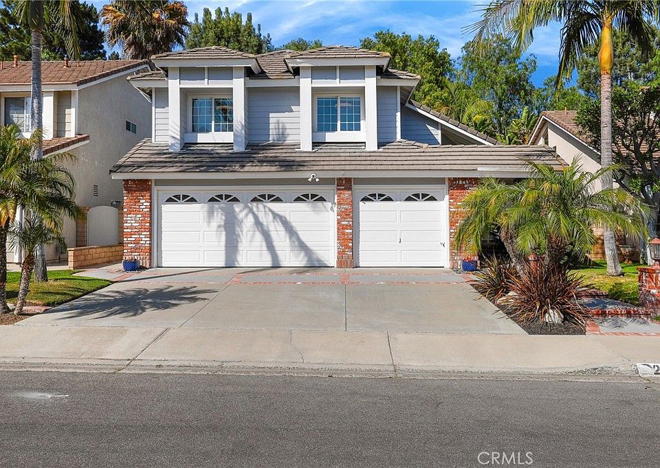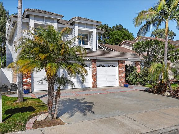 Stunning two-story single-family home, nestled in the sought-after Auburn Ridge neighborhood of Mission Viejo. This residence boasts tropical landscaping and offers a three-car garage. You are welcomed by soaring ceilings and an abundance of natural light streaming through the windows. The open floor plan seamlessly connects each room. The living room features a charming fireplace and a breakfast nook with glass doors that lead to the tranquil backyard. Adjacent to the living room, the kitchen stands as an entertainer's dream, offering views of the pool. The kitchen has been fully remodeled and black stainless-steel appliances are included. New luxury vinyl plank (LVP) flooring has been laid downstairs. Retreat to the primary suite, a true sanctuary that boasts a picturesque bay window and soaring ceilings, creating a serene and spacious environment. The ensuite bathroom features a dual vanity. Step outside to your personal oasis where the sparkling pool and spa are surrounded by lush, tropical landscaping. This outdoor paradise is perfect for relaxation and entertainment alike.